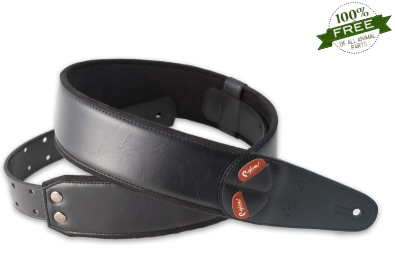 Tracolla realizzata in modo artigianale con materiali ecologici ad alta tecnologia rispettosi dell’ambiente e priva di qualsiasi tessuto animale, caratterizzata da finiture curate in ogni dettaglio, decorazioni uniche, imbottitura in lattice ad alta densità (5 mm), sistema di regolazione RAS, porta plettri incorporato. Colore nero, larghezza 6 cm, lunghezza regolabile da 95 cm a 143 cm, ultra leggera. Indicata per chitarra e basso.