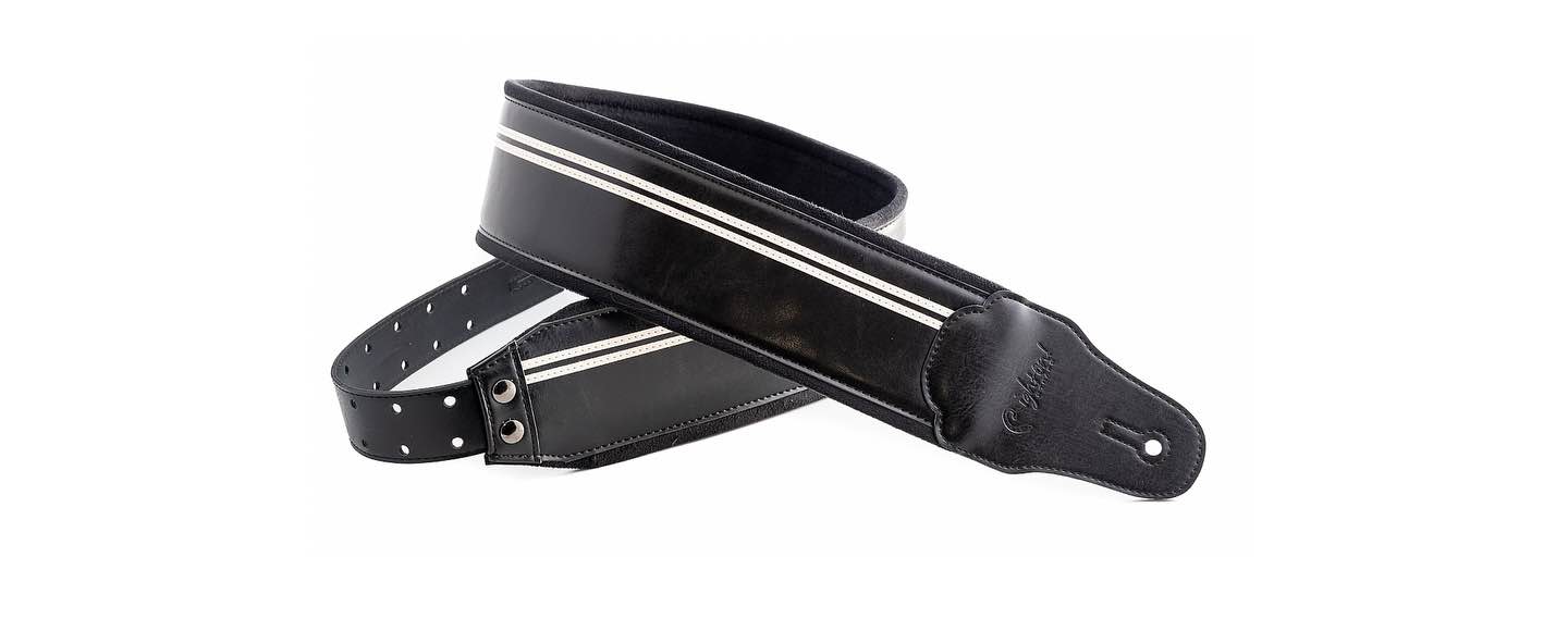 Tracolla realizzata in modo artigianale con materiali ecologici ad alta tecnologia rispettosi dell’ambiente e priva di qualsiasi tessuto animale, caratterizzata da finiture curate in ogni dettaglio, decorazioni di colore bianco, imbottitura in lattice ad alta densità (5 mm), sistema di regolazione RAS, porta plettri incorporato. Colore nero, larghezza 8 cm, lunghezza regolabile da 98 cm a 153 cm, ultra leggera. Indicata per chitarra e basso.