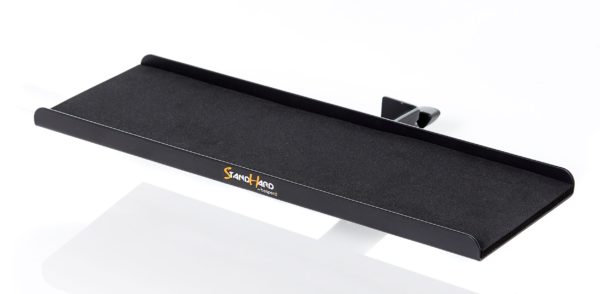 Ripiano porta oggetti con aggancio per asta o leggio. Realizzato in metallo. Superfice imbottita anti urto. Dimensioni 35×12 m