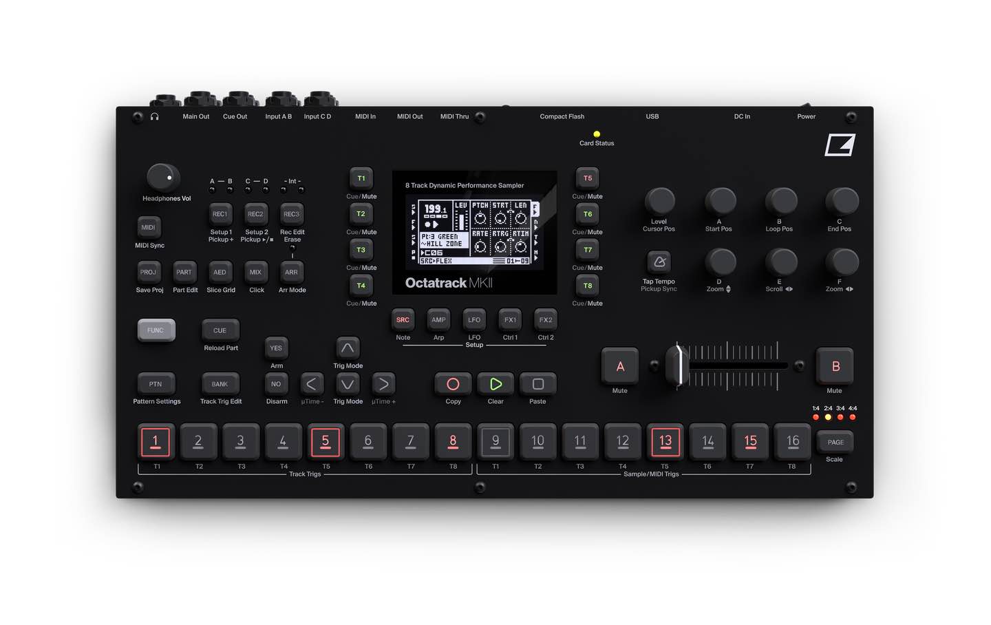 Innovativo campionatore con funzionalità avanzate ideale per l’utilizzo live / DJing, dotato di 4 ingressi audio bilanciati in formato jack da 1/4”, 4 uscite audio bilanciate in formato jack da 1/4”, 1 uscita cuffie in formato jack da 1/4”, convertitori A/D e D/A con qualità sonora a 24-bit, MIDI IN, OUT e THRU, step sequencer interno a 64 steps composto da 16 tracce (8 audio + 8 MIDI), 256 slot dedicati alla memorizzazione dei samples, diverse machines per la manipolazione dei campioni tra cui Flex, Static, Thru, Naighbour, salvataggio project illimitati ciascuno con 256 pattern, editor audio esteso, loop, 3 LFO per ciascuna traccia, LFO Designer, 2 gruppi effetti per ciascuna traccia (per un totale di 16 effetti), canale Master Effect, crossfader ottico da 45mm, display OLED con 128×64 pixel, porta USB 2.0, slot per Compact Flash. Include: alimentatore, cavo USB, 1 Compact Flash da 16GB, 2GB di campioni tratti dalle librerie Loopmasters. Dimensioni: 340 x 185 x 63 mm. Peso: 2.3 kg.