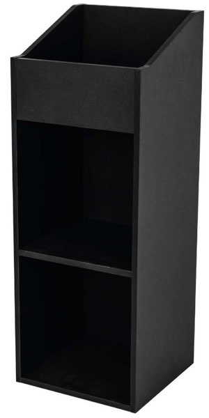 Raccoglitore per contenere fino a 330 vinili da 12”, realizzato in MDF, dimensioni mm 356(L) x 956(A) x 342(P), peso 12.7 kg, colore nero.