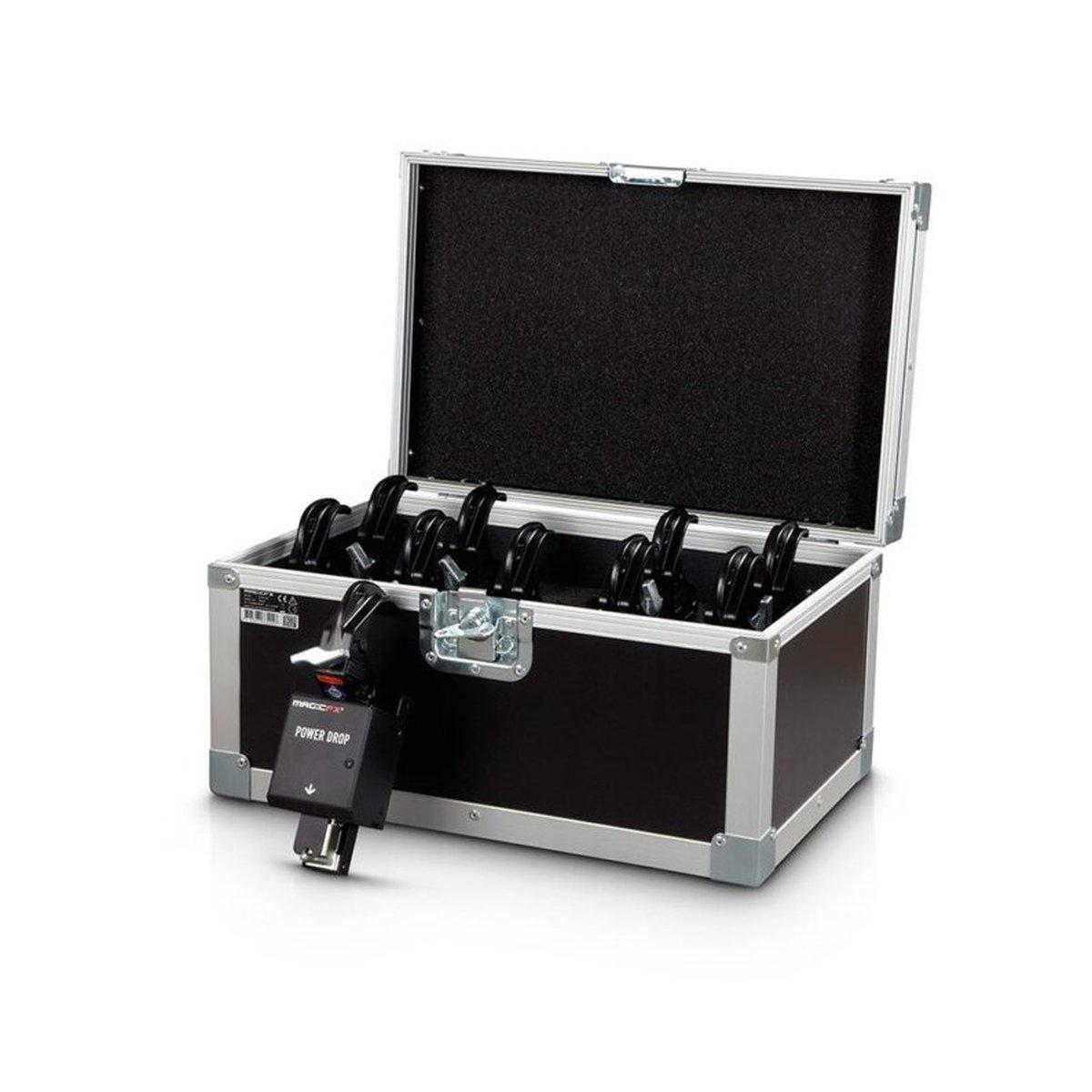 Il POWER DROP SET è un set completo per il lancio, composto da 10 POWER DROPS e 10 morsetti per tende. Confezionato in un robusto flight case. Il set può essere utilizzato per svelare palchi, edifici, prodotti o oggetti speciali. Il nostro POWER DROP SET è composto da dispositivi di lancio Kabuki di alta qualità e potenti per lanci sicuri e rapidi. L’utilizzo di un connettore Neutrik® powerCON consente di controllare i dispositivi separatamente o di abbinarli tra loro., Specifiche: Length 52 cm Width 35 cm Height 33 cm Weight 18.5 kg Voltage 230 Vac 50/60 Hz Power 30 W Control Direct on-off Capacity Up to 20 kg per POWER DROP, recommended distance between POWER DROPS: 1 m Not included Power cable not included Warranty 3 years