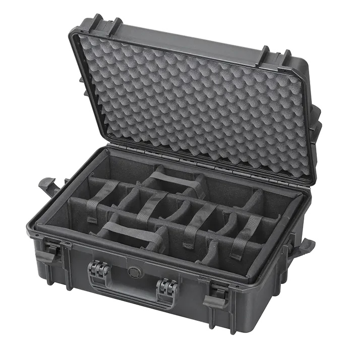 La valigia Impermeabile MAX505 di Panaro, certificata, IP67, STANAG 4280 – DEF STAN 81-41, MILSTD 810, ATA300, è progettata per offrire la massima protezione alla tua attrezzatura in qualsiasi ambiente. Realizzata con materiali di alta qualità e conforme a rigorosi standard, garantisce che i tuoi oggetti di valore rimangano sicuri, protetti e asciutti, anche nelle condizioni più difficili. Che tu lavori in condizioni climatiche estreme, abbia bisogno di imballaggi industriali resistenti o semplicemente cerchi una protezione affidabile per oggetti sensibili, La valigia Impermeabile MAX505 è la soluzione perfetta. Colore nero., Caratteristiche: Quando si tratta di proteggere la tua attrezzatura, la Valigia Impermeabile MAX505CAM offre una serie di caratteristiche distintive che garantiscono prestazioni e affidabilità. Ogni elemento del suo design è stato attentamente studiato per soddisfare le esigenze sempre più elevate del mercato e dei professionisti, offrendo al contempo resistenza e facilità d’uso. Esplora le caratteristiche principali qui sotto per scoprire come la MAX505CAM può rispondere alle tue esigenze specifiche. Set di divisori imbottiti con scomparti regolabili per organizzare e proteggere al meglio i tuoi strumenti. Caratteristiche principali: – Guarnizione ermetica – Valvola automatica di pressurizzazione – Chiusure di sicurezza a doppio step per facilitare l’apertura – Manico morbido ad alta ergonomicità – Doppia predisposizione lucchetto – Predisposizione cintura a tracolla – Sistema di impilabilità – Pareti molto spesse per garantire la resistenza agli urti – Punti di fissaggio per varie applicazioni – Cerniera lungo tutto il profilo della valigia – Perni in nylon, nessun problema di corrosione – Coperchio serigrafabile – Predisposizione per etichetta resinata Le MAX Cases sono la nostra linea di custodie impermeabili, progettate per offrire una protezione superiore dagli agenti esterni, inclusi acqua, polvere e urti, rendendole ideali per il trasporto di prodotti fragili e di valore. Queste custodie sono certificate IP67 e ATA300 Cat. 1, garantendo l’idoneità al trasporto aereo. Sono inoltre testate secondo gli standard militari STANAG 4280 e DEF STAN 81-41, assicurando la loro adattabilità a un’ampia gamma di applicazioni, tra cui settore nautico, fotografia e broadcasting, immersioni subacquee, sport all’aperto, settore medico, militare, corpi speciali, imballaggi industriali e industria manifatturiera. Inoltre, sono certificate UN4H2 per il trasporto di batterie agli Ioni di Litio per merci pericolose e sono 100% Made in Italy., Specifiche: Interno: 500.0×350.0×194.0 mm · 19.69×13.78×7.64 inch Esterno: 555.0×428.0×211.0 mm · 21.85×16.85×8.31 inch Profondità coperchio – fondo: 58 + 136 mm / 2.28 + 5.36 inch Peso: 3.90 kg Capacità: 33,95Lt Termoresistenza: -51 / 90°C°C · -59.8 / 194°F°F