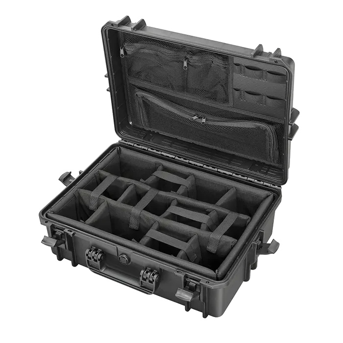 La valigia Impermeabile MAX505 di Panaro, certificata, IP67, STANAG 4280 – DEF STAN 81-41, MILSTD 810, ATA300, è progettata per offrire la massima protezione alla tua attrezzatura in qualsiasi ambiente. Realizzata con materiali di alta qualità e conforme a rigorosi standard, garantisce che i tuoi oggetti di valore rimangano sicuri, protetti e asciutti, anche nelle condizioni più difficili. Che tu lavori in condizioni climatiche estreme, abbia bisogno di imballaggi industriali resistenti o semplicemente cerchi una protezione affidabile per oggetti sensibili, La valigia Impermeabile MAX505 è la soluzione perfetta. Colore nero., Caratteristiche: Quando si tratta di proteggere la tua attrezzatura, la Valigia Impermeabile MAX505CAMORG offre una serie di caratteristiche distintive che garantiscono prestazioni e affidabilità. Ogni elemento del suo design è stato attentamente studiato per soddisfare le esigenze sempre più elevate del mercato e dei professionisti, offrendo al contempo resistenza e facilità d’uso. Esplora le caratteristiche principali qui sotto per scoprire come la MAX505CAMORG può rispondere alle tue esigenze specifiche. Set di divisori imbottiti con scomparti regolabili per organizzare e proteggere al meglio i tuoi strumenti. Organizer per coperchio con chiusure a zip e tasca portadocumenti. Caratteristiche principali: – Guarnizione ermetica – Valvola automatica di pressurizzazione – Chiusure di sicurezza a doppio step per facilitare l’apertura – Manico morbido ad alta ergonomicità – Doppia predisposizione lucchetto – Predisposizione cintura a tracolla – Sistema di impilabilità – Pareti molto spesse per garantire la resistenza agli urti – Punti di fissaggio per varie applicazioni – Cerniera lungo tutto il profilo della valigia – Perni in nylon, nessun problema di corrosione – Coperchio serigrafabile – Predisposizione per etichetta resinata Le MAX Cases sono la nostra linea di custodie impermeabili, progettate per offrire una protezione superiore dagli agenti esterni, inclusi acqua, polvere e urti, rendendole ideali per il trasporto di prodotti fragili e di valore. Queste custodie sono certificate IP67 e ATA300 Cat. 1, garantendo l’idoneità al trasporto aereo. Sono inoltre testate secondo gli standard militari STANAG 4280 e DEF STAN 81-41, assicurando la loro adattabilità a un’ampia gamma di applicazioni, tra cui settore nautico, fotografia e broadcasting, immersioni subacquee, sport all’aperto, settore medico, militare, corpi speciali, imballaggi industriali e industria manifatturiera. Inoltre, sono certificate UN4H2 per il trasporto di batterie agli Ioni di Litio per merci pericolose e sono 100% Made in Italy., Specifiche: Interno: 500.0×350.0×194.0 mm · 19.69×13.78×7.64 inch Esterno: 555.0×428.0×211.0 mm · 21.85×16.85×8.31 inch Profondità coperchio – fondo: 58 + 136 mm / 2.28 + 5.36 inch Peso: 3.90 kg Capacità: 33,95Lt Termoresistenza: -51 / 90°C°C · -59.8 / 194°F°F