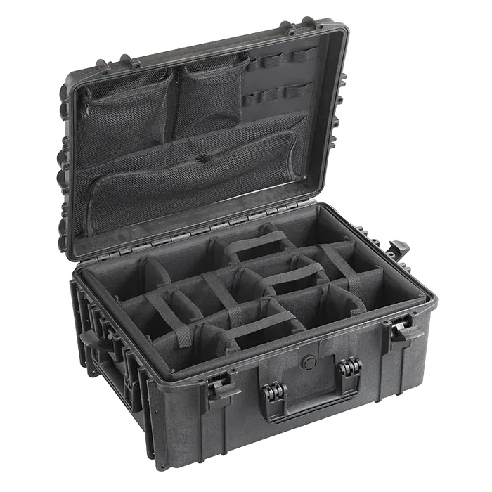 La valigia Impermeabile MAX540H245 di Panaro, certificata, IP67, STANAG 4280 – DEF STAN 81-41, MILSTD 810, ATA300, è progettata per offrire la massima protezione alla tua attrezzatura in qualsiasi ambiente. Realizzata con materiali di alta qualità e conforme a rigorosi standard, garantisce che i tuoi oggetti di valore rimangano sicuri, protetti e asciutti, anche nelle condizioni più difficili. Che tu lavori in condizioni climatiche estreme, abbia bisogno di imballaggi industriali resistenti o semplicemente cerchi una protezione affidabile per oggetti sensibili, La valigia Impermeabile MAX540H245 è la soluzione perfetta. Colore nero., Caratteristiche: Quando si tratta di proteggere la tua attrezzatura, la Valigia Impermeabile MAX540H245 CAMORG offre una serie di caratteristiche distintive che garantiscono prestazioni e affidabilità. Ogni elemento del suo design è stato attentamente studiato per soddisfare le esigenze sempre più elevate del mercato e dei professionisti, offrendo al contempo resistenza e facilità d’uso. Esplora le caratteristiche principali qui sotto per scoprire come la MAX540H245 CAMORG può rispondere alle tue esigenze specifiche. Set di divisori imbottiti con scomparti regolabili per organizzare e proteggere al meglio i tuoi strumenti. Organizer per coperchio con chiusure a zip e tasca portadocumenti. Caratteristiche principali: – Guarnizione ermetica – Valvola automatica di pressurizzazione – Chiusure di sicurezza a doppio step per facilitare l’apertura – Manico morbido ad alta ergonomicità – Doppia predisposizione lucchetto – Predisposizione cintura a tracolla – Sistema di impilabilità – Pareti molto spesse per garantire la resistenza agli urti – Punti di fissaggio per varie applicazioni – Cerniera lungo tutto il profilo della valigia – Perni in nylon, nessun problema di corrosione – Coperchio serigrafabile – Predisposizione per etichetta resinata Le MAX Cases sono la nostra linea di custodie impermeabili, progettate per offrire una protezione superiore dagli agenti esterni, inclusi acqua, polvere e urti, rendendole ideali per il trasporto di prodotti fragili e di valore. Queste custodie sono certificate IP67 e ATA300 Cat. 1, garantendo l’idoneità al trasporto aereo. Sono inoltre testate secondo gli standard militari STANAG 4280 e DEF STAN 81-41, assicurando la loro adattabilità a un’ampia gamma di applicazioni, tra cui settore nautico, fotografia e broadcasting, immersioni subacquee, sport all’aperto, settore medico, militare, corpi speciali, imballaggi industriali e industria manifatturiera. Inoltre, sono certificate UN4H2 per il trasporto di batterie agli Ioni di Litio per merci pericolose e sono 100% Made in Italy., Specifiche: Interno: 538.0×405.0×245.0 mm · 21.18×15.94×9.64 inch Esterno: 594.0×473.0×270.0 mm · 23.39×18.62×10.63 inch Profondità coperchio – fondo: 50 + 195 mm / 1.97 + 7.68 inch Peso: 5,2 kg Capacità: 53,38Lt Termoresistenza: -30 / 90°C°C · (-22 / 194°F)°F