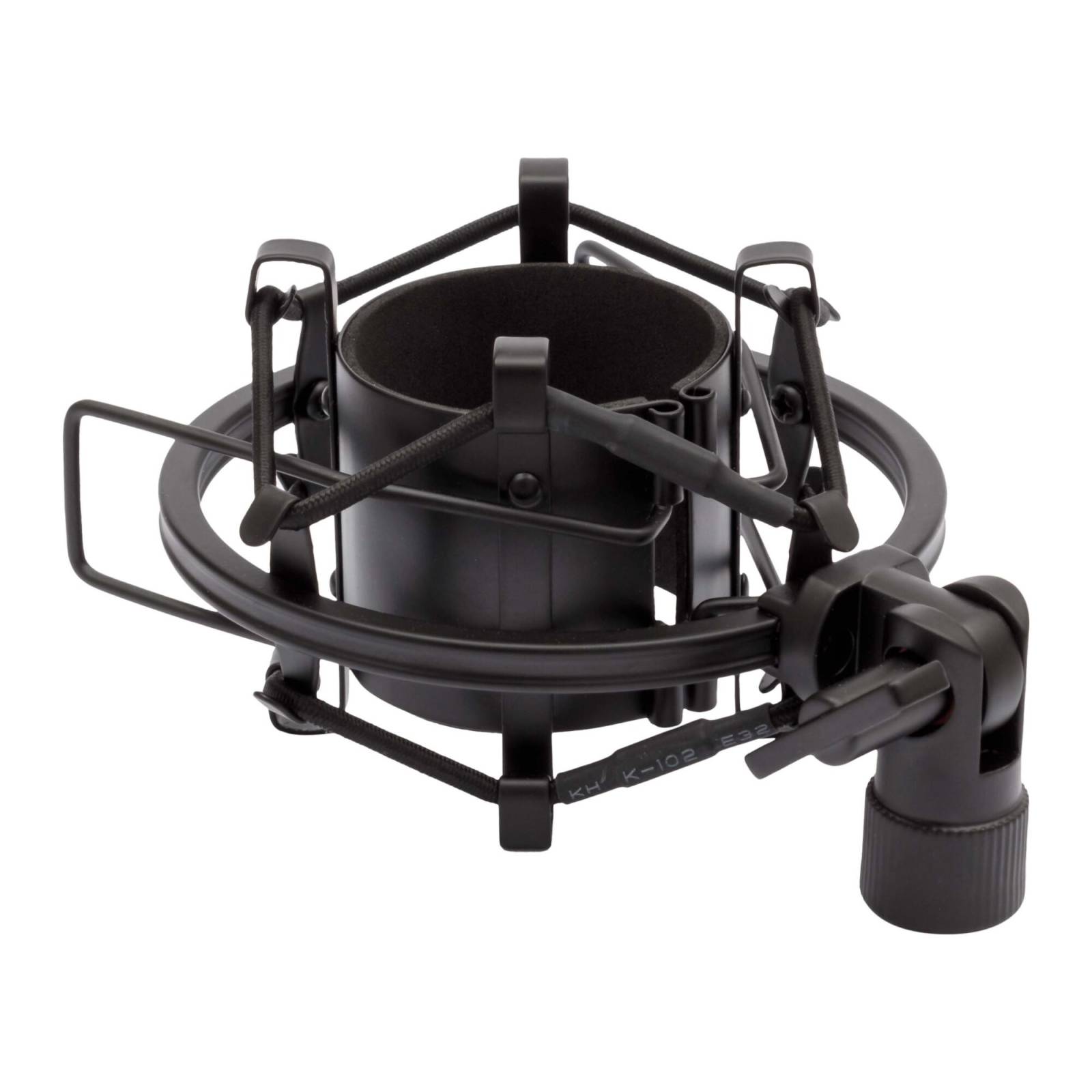 Supporto professionale anti-vibrazione con doppia molla elastica e guaina protettiva per microfono a condensatore (Ø min – max: 44 – 48 mm).