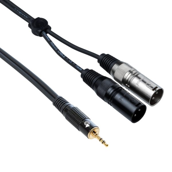 Cavo interlink serie Eagle Pro, realizzato con un mini jack stereo diametro 3,5 mm e due cannon maschi. Lunghezza 3 m.