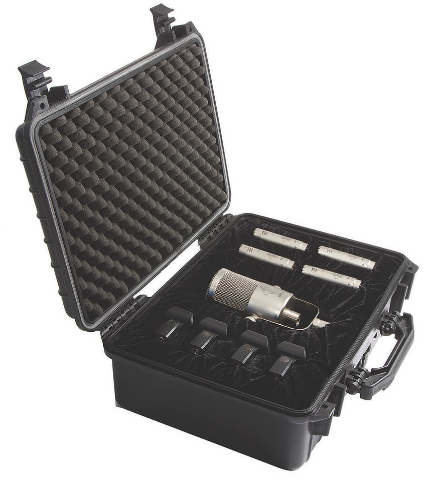 Set di microfoni per batteria composto da 1 x DM-1B (cassa), 1 x DM-1S (rullante), 3 x DM-1T (tom), a prezzo vantaggioso (30% in meno del prezzo dei singoli pezzi), completi di mic clip e valigetta in ABS.