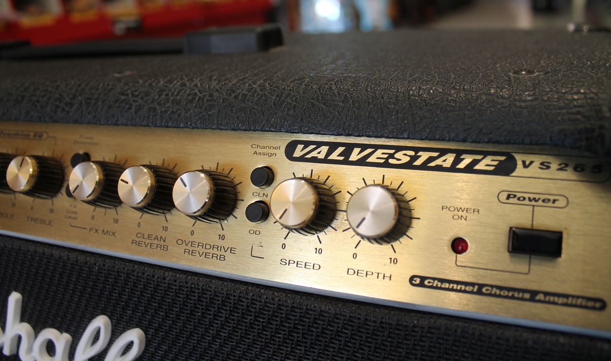 The VS 265 is a 3-channel 2 x 65 watt transistor guitar combo + 1 ECC83 tube, equipped with 2 x 12” Marshall GOLD Back SPK 100 – 8 ohms speakers, chorus, reverb + stereo line out