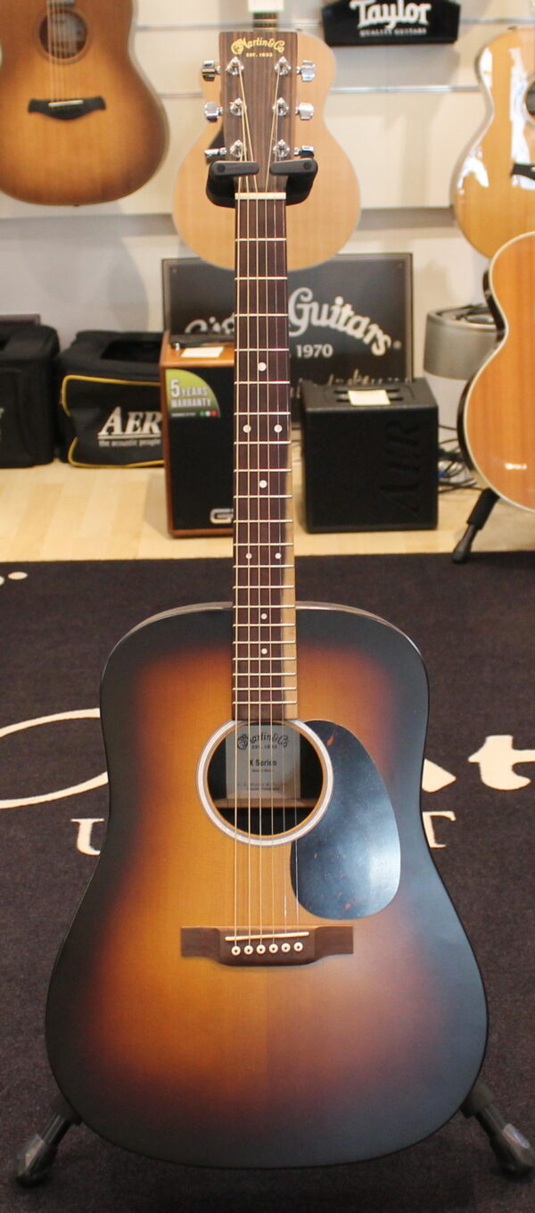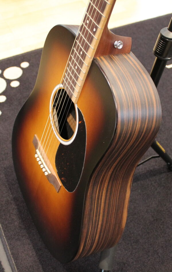 Martin took the DX1AE Macassar Burst and reinvented it. The result is the D-X2E Burst. This Dreadnought model has a Spruce top, high-pressure laminate (HPL) back and sides with Macassar pattern. New mother-of-pearl pattern inlay on rosette and fingerboard gives the D-X2E Burst richness, making it as impressive to look at as it is to play. With Performing Artist neck, fingerboard and bridge in select wood, the sound transfer of this model has been greatly improved. It is equipped with Fishman MX electronics and Martin Authentic Acoustic Lifespan 2.0 strings. With a new soft case with headstock, bridge and peg protectors, durable water-repellent exterior and foam padding, this model is ready to go anywhere.