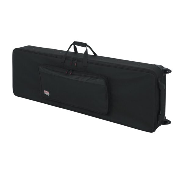 La Gator GK-88 è una custodia semirigida, leggera ma che offre una buona protezione alla tastiera. Le cinghie interne permettono di mantenere la tastiera salda all’interno della custodia, evitando i movimenti. Le ruote e la maniglia consentono di trasportarla agevolmente, mentre l’ampio scompartimento esterno permette di trasportare pedali e cavi. È pensata per il tastierista che ha bisogno di una custodia leggera da trasportare a mano. Ideale per tastiere 88 tasti.