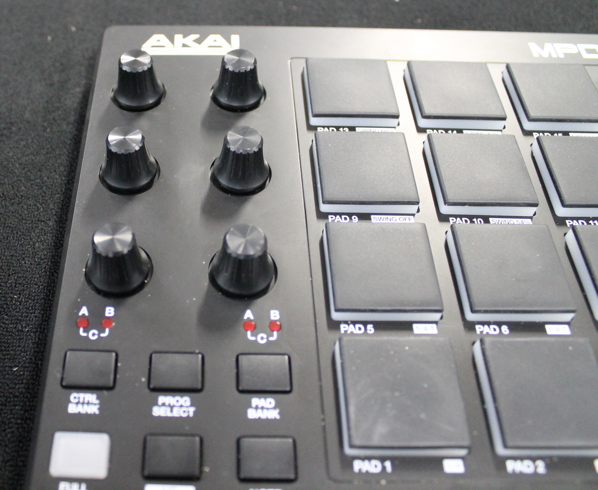 There is a rich set of physical controls, faders and/or rotary potentiometers, all configurable on multiple banks to allow the control of many parameters of your software passing from one bank to another. The functions derived from the MPC series are also available, from the Note Repeat with programmable swing to the Full Level that cancels the velocity response if necessary. The programming of MIDI messages sent by each physical control (pads, potentiometers, faders, etc..) is possible through a dedicated software editor and, only in the models MPD226 and MPD232, in an extremely intuitive way directly from the controller itself through the Edit function activated by the homonymous button. The MPD2 series controllers are powered directly via USB, so no external power supply is required.