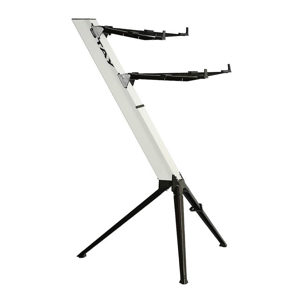 Supporto a colonna per tastiere, in alluminio verniciato, altezza 1300 mm, peso 5,8 kg, dotato di 2 coppie di braccetti da 450 e 380 mm per 2 tastiere max 76 tasti con peso non superiore a 40 kg, portata massima 70 kg. Colore bianco. Borsa per il trasporto inclusa.