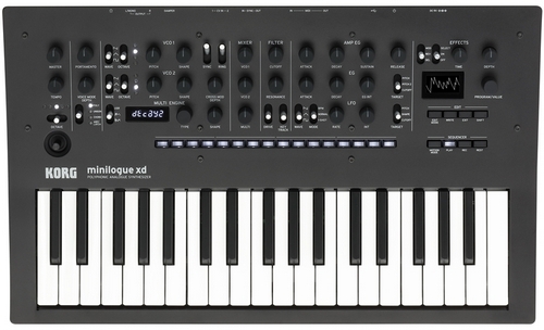 minilogue XD si basa sullo sviluppo ulteriore della tecnologia originariamente impiegata su minilogue, il cui autentico suono analogico ha avuto un grande impatto nel mondo dei Synth. Con 4 voci di polifonia la struttura di sintesi minilogue XD è composta da: 2VCO + MULTI ENGINE, 1VCF, 2EG, 1VCA, ed un LFO; a cui si aggiungono i circuiti caratteristici di questo strumento come il Wave Shaping per la modellazione degli armonici, la Ring & Cross Modulation, il Sync tra gli oscillatori, il filtro a due poli, il Drive che aggiunge maggiore corpo al segnale inviato ai filtri. Ogni parametro è stato accuratamente messo a punto in base alle richieste di affermati musicisti. Le timbriche ottenibili da questo strumento spaziano dai caldi suoni di Pads, ai tipici timbri di basso analogico “grasso” e presente, ai suoni solisti “Lead” sempre dinamici e penetranti, coprendo praticamente in questo modo ogni esigenza di genere e repertorio. È naturalmente possibile salvare i propri suoni personali nello strumento, vi sono a disposizione 500 locazioni di memoria totali, di cui 200 già presettati.