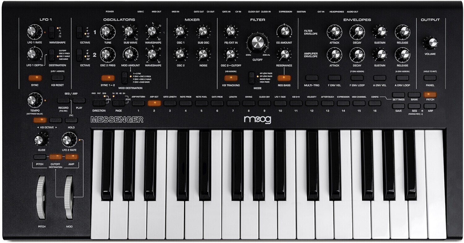 È arrivato un nuovo modo di sperimentare, comunicare e connettersi attraverso il suono. Si chiama Messenger ed è il nuovo sintetizzatore analogico monofonico firmato Moog, un omaggio ai circuiti classici che hanno fatto la storia della sintesi, arricchito da funzionalità moderne pensate per dare forma al futuro del sound design. Messenger è stato progettato per musicisti elettronici, produttori, sound designer e appassionati dell’analogico, offrendo uno strumento versatile e potente adatto a ogni fase del percorso musicale, indipendentemente dal livello di esperienza. Il suo layout intuitivo, con controlli ben visibili e diretti, invita all’esplorazione immediata e consente una comprensione profonda delle tecniche di sintesi. Per chi si affaccia per la prima volta a questo mondo, Messenger rappresenta il punto di partenza ideale. Per gli utenti esperti, invece, offre una reinterpretazione innovativa dei circuiti analogici Moog più amati, con caratteristiche avanzate che lo rendono perfetto sia sul palco che in studio. Tra le sue caratteristiche principali, Messenger vanta due oscillatori con funzionalità di wavefolding, un sub-oscillatore con forme d’onda variabili, due inviluppi ADSR a ciclo continuo, una tastiera a 32 tasti full-size semi-pesati con aftertouch e velocity, e il celebre filtro ladder Moog, aggiornato con compensazione dei bassi in risonanza, slope multipli e vera funzionalità multimodo. Messenger offre 256 preset onboard per salvare e richiamare immediatamente i suoni preferiti. Dispone di un arpeggiatore intuitivo, ingressi per pedale sustain ed espressione, oltre a un sequencer esclusivo con controlli probabilistici e piena compatibilità con Eurorack, rendendolo il cuore perfetto di qualsiasi setup, sia domestico che professionale. È in grado di generare lead potenti, bassi profondi e vibranti, pad delicati, arpeggi fluidi, percussioni personalizzate e droni complessi. La sua capacità di modellare anche i suoni più inusuali lo rende uno strumento capace di trasformare la percezione stessa del mondo sonoro. Messenger eredita il DNA dei monosynth Moog più iconici come Minimoog Model D, Voyager, Grandmother e Subsequent 37, reinterpretando il formato con circuiti inediti e un suono analogico senza tempo. Il filtro ladder, simbolo del suono Moog, si rinnova grazie a un design innovativo che ne mantiene l’impronta sonora leggendaria ma consente la preservazione delle frequenze basse anche con risonanza elevata. Alla classica pendenza di filtro passa basso a 4 poli si aggiunge ora anche una modalità a 2 poli. La tastiera da 32 tasti full-size, semi-pesati, con aftertouch e velocity, la robusta scocca in metallo, le 256 memorie e l’interfaccia a manopola-per-funzione offrono una suonabilità diretta ed efficace, ideale anche per le performance dal vivo. Il sequencer integrato permette di registrare fino a 64 step, con funzioni di randomizzazione e registrazione dei parametri per una composizione sempre creativa e ispirata. Con due inviluppi ADSR loopabili, due LFO e numerose opzioni di modulazione audio-rate, Messenger diventa un vero e proprio playground sonoro, offrendo un’ampia libertà espressiva. La connettività completa include sei uscite CV analogiche, un ingresso audio esterno, connessioni per pedali, MIDI DIN a 5 pin e MIDI su USB-C, garantendo l’integrazione fluida con qualsiasi sistema di produzione o performance. Messenger è molto più di un sintetizzatore: è un ponte tra passato e futuro, tra tecnica e ispirazione.
