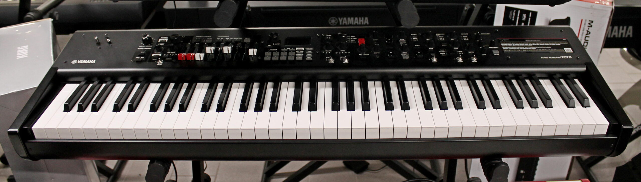 The Yamaha YC73 packs all the character of vintage combo organs and more into a compact, concert-friendly 73-key stage piano. Using Yamaha’s proprietary Virtual Circuit Modeling, the YC73 is one of the most realistic sounding analog organ emulations on the market and comes with a great selection of additional instrumental voices and built-in killer effects. The YC73 is designed with performance in mind, and its waterfall keys and physical drawbars are super responsive and a lot of fun to play and manipulate. Although the YC73 has a vintage feel, it boasts all the functionality and reliability of a digital instrument, with extensive customization options and integration with audio computers for recording, playback, and MIDI control. The experience of playing a drawbar organ is visceral and interactive, and the YC73 offers a great feel for inspiring lively performances. The physical drawbars and intuitive control surface make it easy to shape sounds on the fly without getting bogged down in programming patches. YC73 has a weighted and balanced action that models the unmistakable feel of an electric piano. It is incredibly responsive, perfect for big chords or dancing around the keys with a light touch. The basis of the Yamaha YC73’s rich, detailed sound is Yamaha’s proprietary Virtual Circuit Modeling (VCM). Originally developed by Yamaha for the “Add-on Effects” series for their digital mixing console, VCM digitally emulates analog equipment down to the level of individual components. The YC73’s VCM organ engine mimics the analog topology of Yamaha’s classic organs for surprisingly accurate sound, feel, behavior, and realistic rotary speaker sounds that will transport you to a happy vintage dream world with all the benefits of digital sound processing.